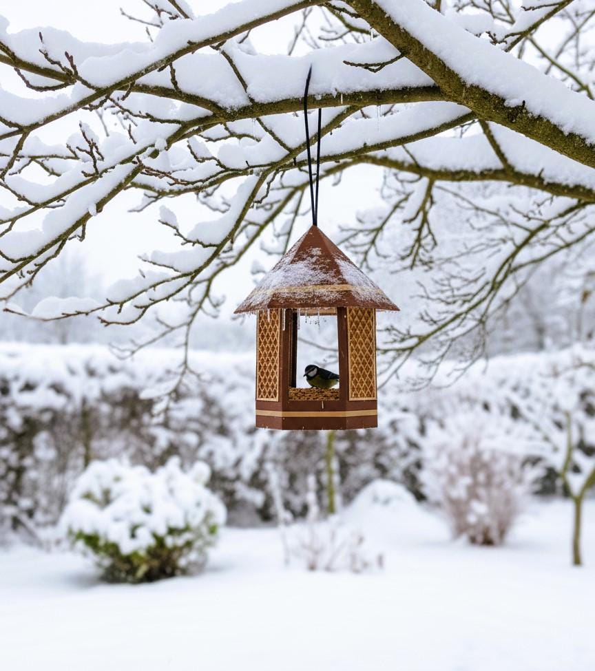 Bird feeder for bird pecking. This unique bird feeder will be a decoration of your garden or balcony. Its organic shape naturally attracts the birds and provides them with comfortable access to food and gives you a pleasant feeling of being close to nature.